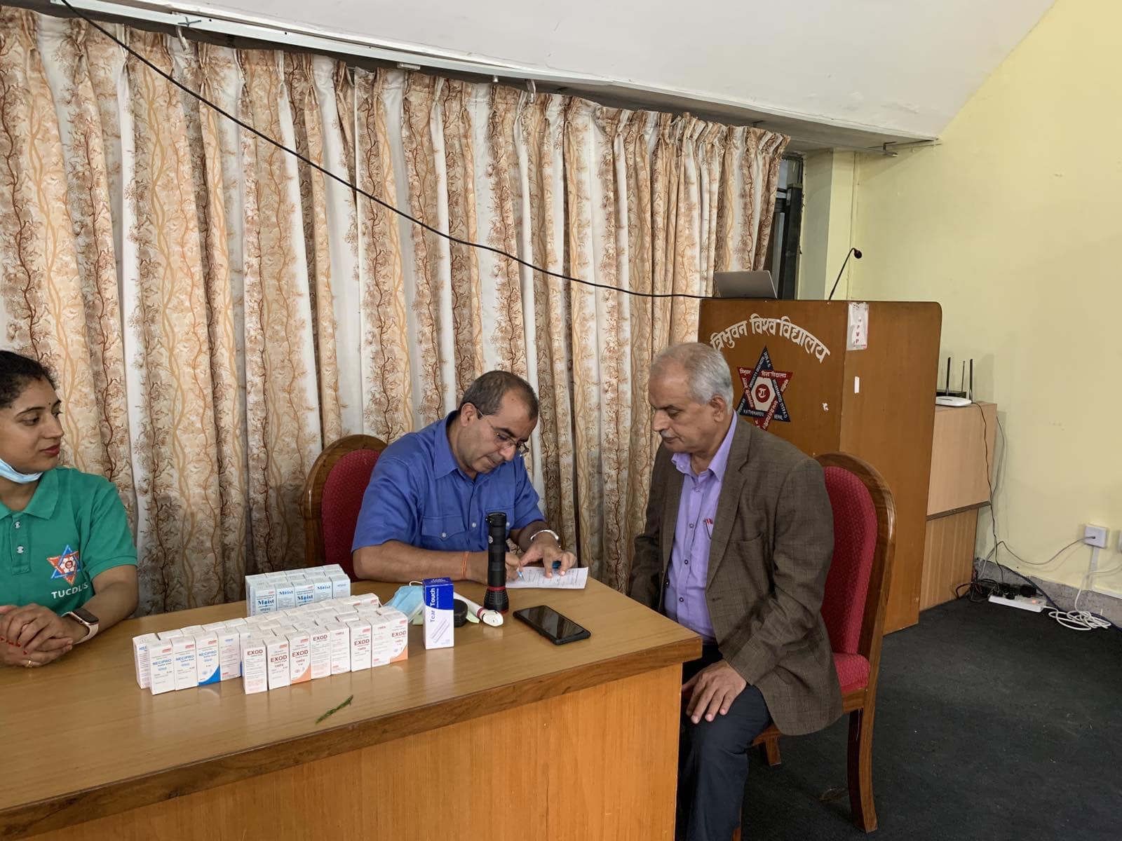 त्रिभुवन विश्वविद्यालयका शिक्षाध्यक्ष प्रा.डा. शिवलाल भुसालज्यूको आँखा परीक्षण गरी शिविरको सुरुवात गरिएको हो । उक्त शिविरमा विश्वविद्यालयका प्राध्यापक, विद्यार्थी तथा कर्मचारी गरी जम्मा ४२० जनाको आँखा परीक्षण भएको छ । नेत्र विशेषज्ञ प्रा.डा. प्रदीप बास्तोलाको नेतृत्वको टिमबाट आँखा परीक्षण कार्य भएको हो । परीक्षणपछि आँखाको दृष्टि कम्जोर भएको जम्मा १३० जनालाई निःशुल्क आवश्यकता अनुसारका पावर चस्मा तथा १५० जनालाई मोईस्ट म्याक्स लगाएतको आई ड्रपहरु समेत उपलब्ध गराइएको छ । शिविरका लागि चस्मा निःशुल्क रुपमा हेल्पिङ्ग ह्याण्डस नेपालले उपलब्ध गराएको हो ।
