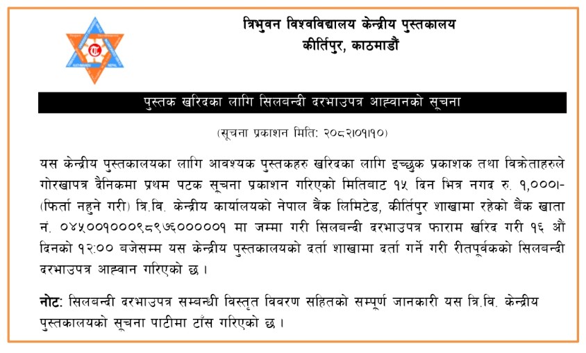 पुस्तक खरिदका लागि सिलबन्दी दरभाउपत्र आह्वानको सूचना